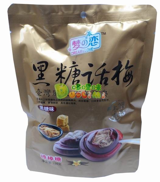 品 名:夢之戀話梅棒棒糖(黑糖味)120克(可四味混批) 進(jìn)口食品批發(fā)