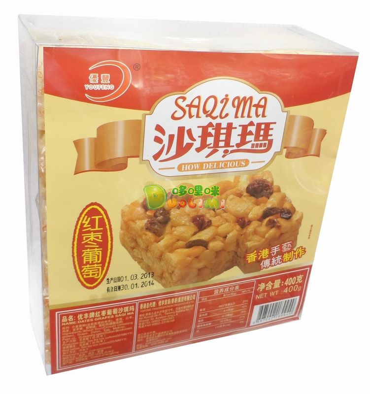 品 名:優(yōu)豐沙琪瑪(紅棗葡萄)400克 進口食品批發(fā)