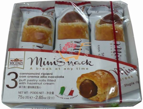 品 名:維鮮牌迷你榛仁醬夾心直條餅干/75克 進口食品批發(fā)