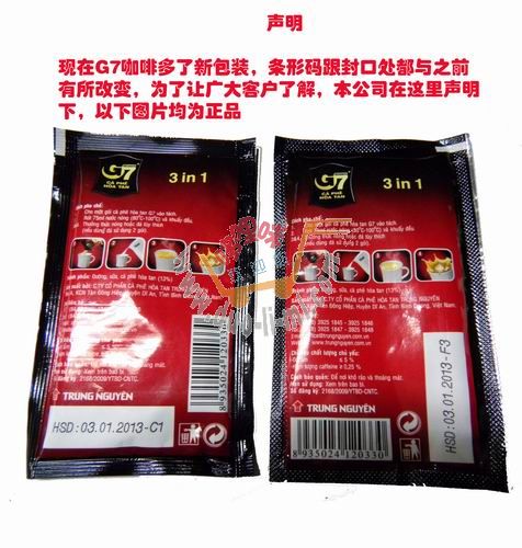 假的G7咖啡日期是連著線,不是噴墨打印!請(qǐng)看下面圖片: