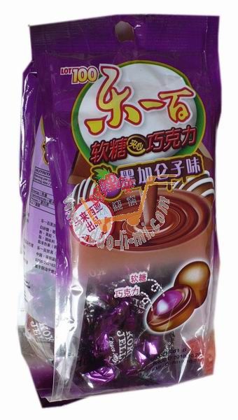 品 名:樂(lè)一百軟糖夾心巧克力(黑加侖子味)100克 進(jìn)口食品批發(fā)