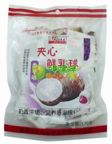 品 名:優(yōu)之良品夾心鮮乳球(香芋味)120克 進(jìn)口食品批發(fā)