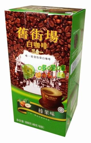 品 名:馬版盒裝舊街場3合1白咖啡(榛果)(40gX8條) 進口食品批發(fā)
