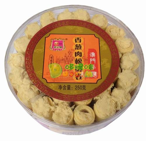 品 名:嘉記園罐裝肉松蛋卷(香蔥味)250克 進口食品批發(fā)